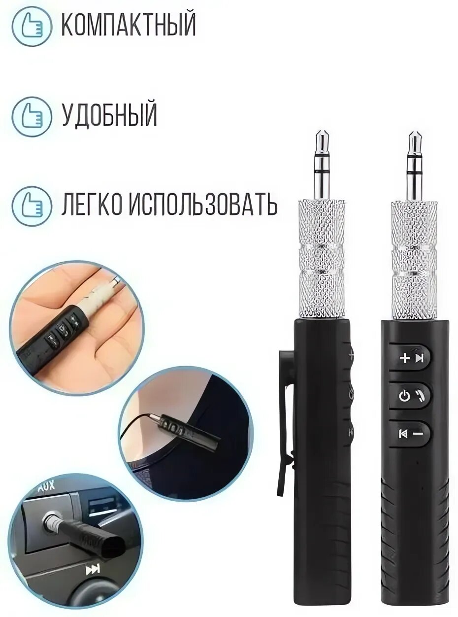 | Комплектация | Bluetooth ресивер, двусторонний металлический коннектор 3,5 мм (mini jack), инструкция по применению |