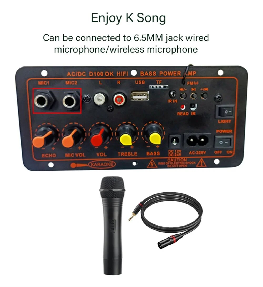 Купить Плата усилителя MP3, 600 Вт, Bluetooth 5,0, 12 В, 24 В, двойной микрофон, AMP модуль, USB TF FM, Автомобильная Музыка без потерь, бас-звук для сабвуфера