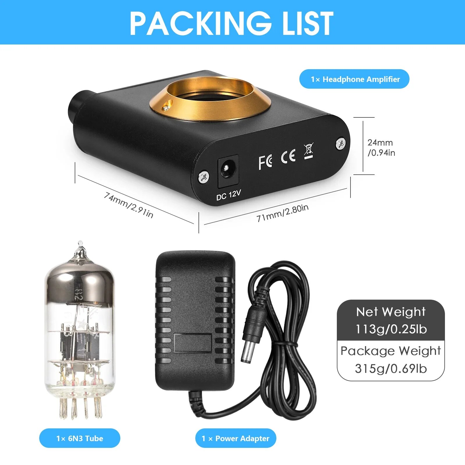 Ультра-компактный вакуумный трубчатый усилитель для наушников, EU Power Adapter