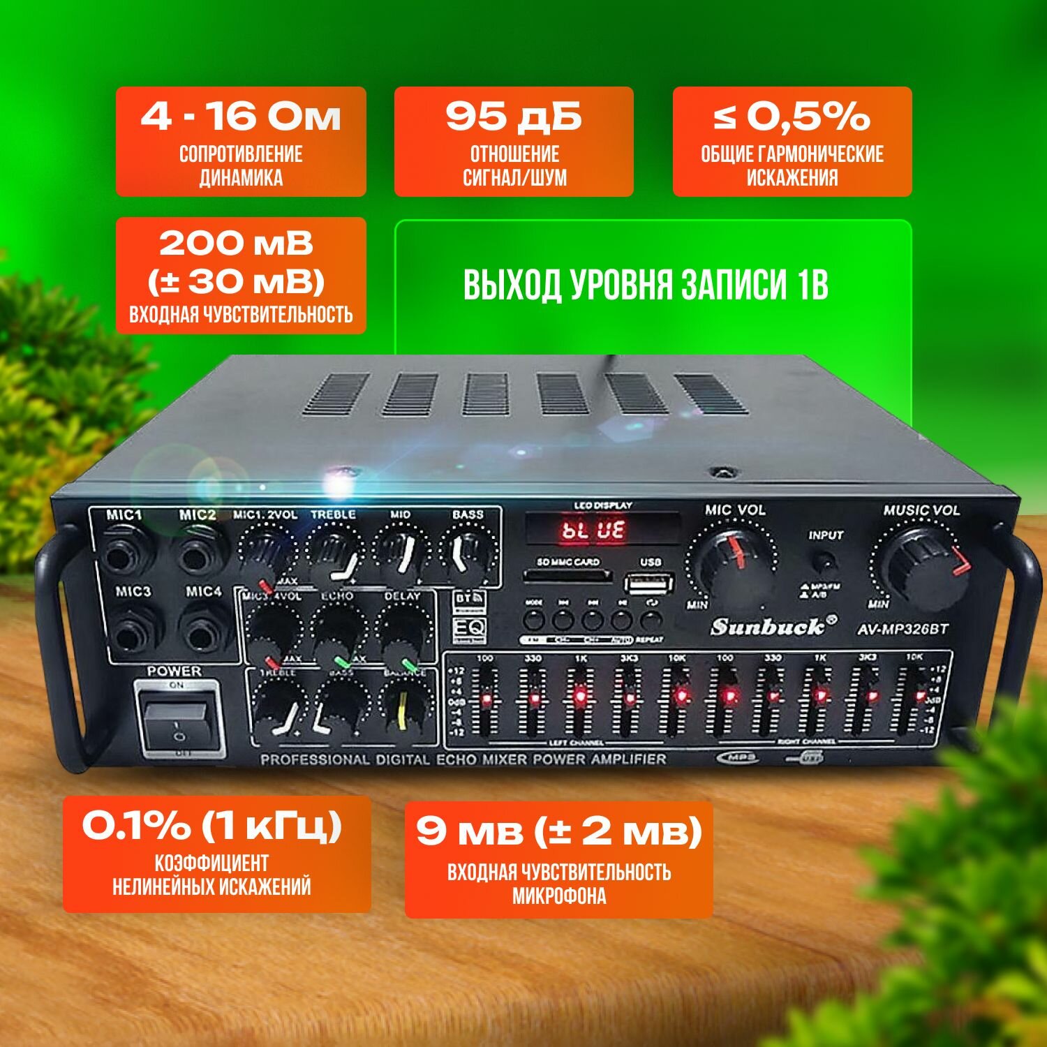 Аудио усилитель для колонок Sunbuck AS-U336BU Bluetooth с эквалайзером интересное: