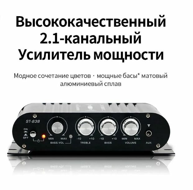 Аудио усилитель ST-838 черный, Автомобильный 2.1-канальный сабвуфер HIFI, усилитель звука, поддержка MP3, с адаптером US Plug интересное: