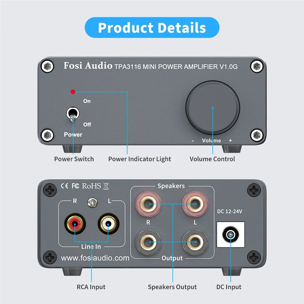 Купить Fosi аудио V1.0 2-канальный стерео аудио усилитель мощности класса D Mini Hi-Fi профессиональный цифровой усилитель для домашних динамиков 50 Вт x2