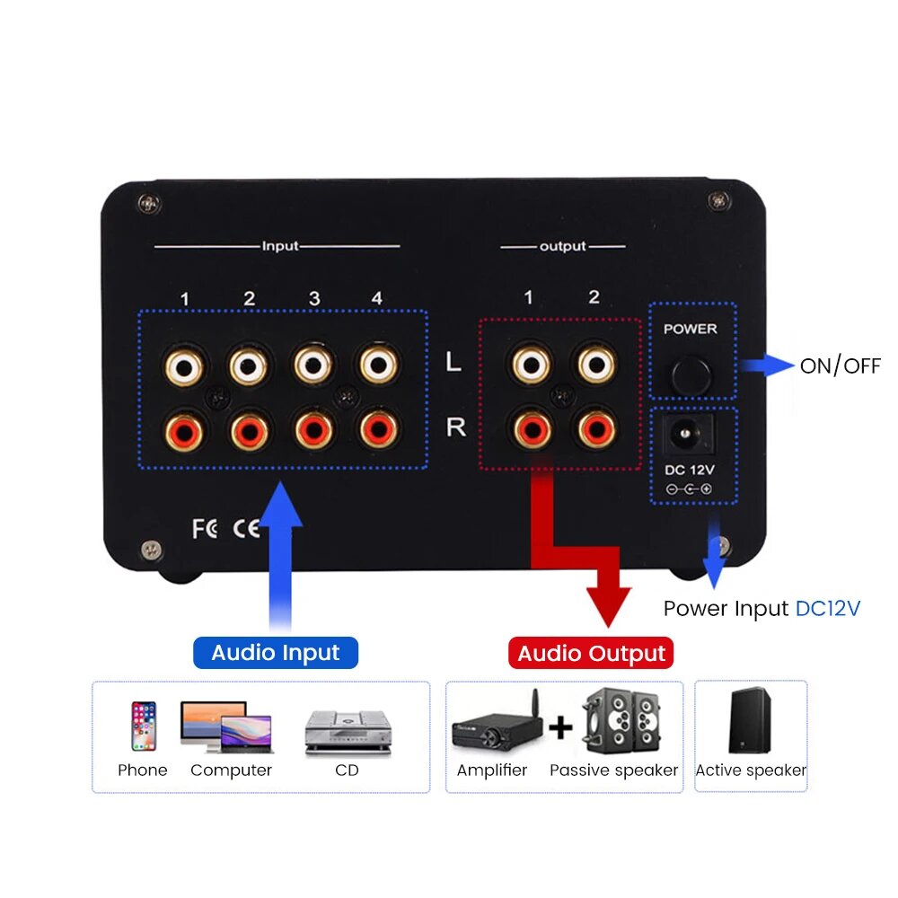 Усилитель для наушников PJ. MIAOLAI SA-1000 Tube Front Stage 4 In 2 Out, Black 12V EU