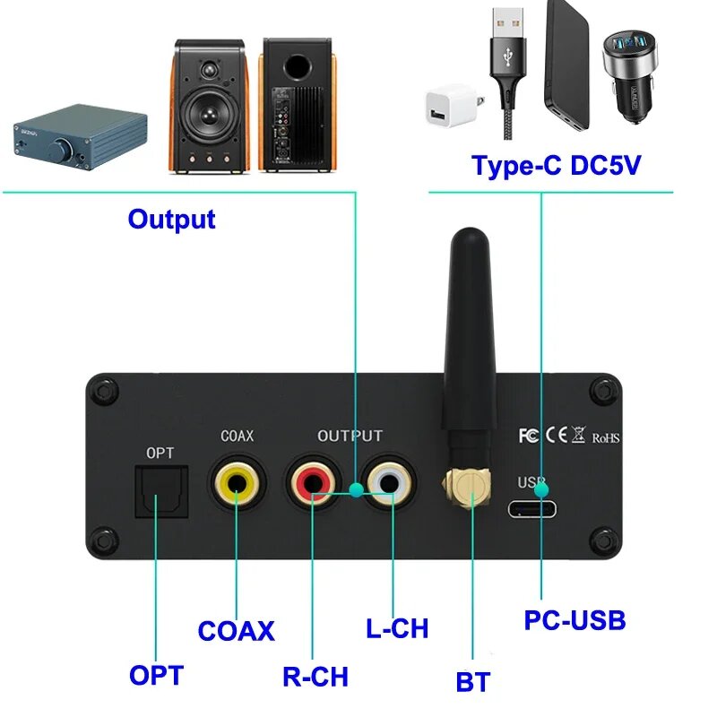 Флагманский аудио-декодер Bluetooth ES9038Q2M DAC QCC5125, модуль Bluetooth, адаптер Bluetooth, USB-декодер интересное: