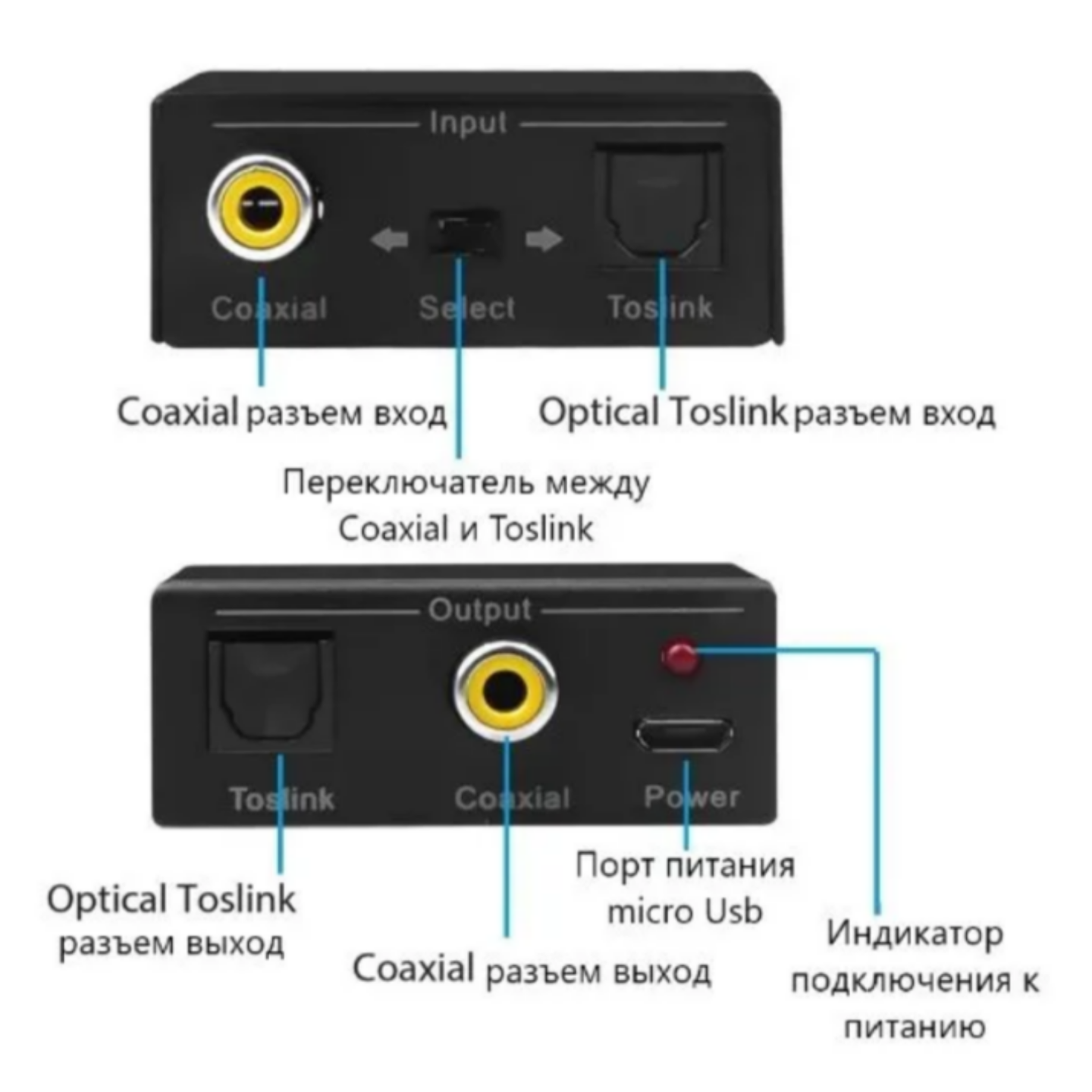 | Дополнительная информация | Конвертер двунаправленный, имеет функцию двойного выхода с Coaxial и Toslink |