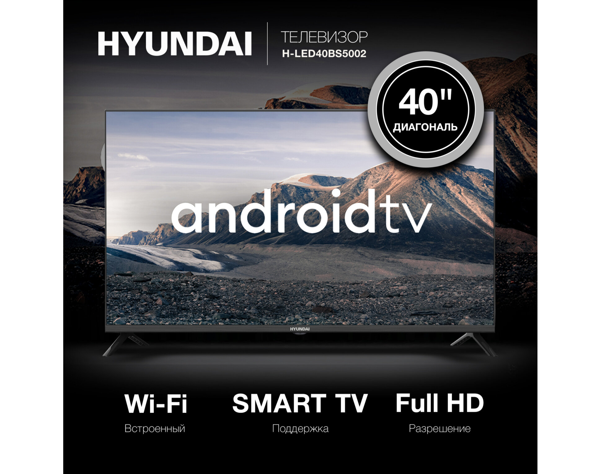 Купить 40" Телевизор Hyundai H-LED40BS5002, FULL HD, черный, смарт ТВ, Android TV