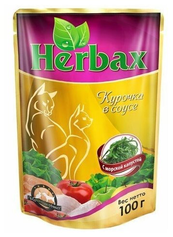 Купить HERBAX для взрослых кошек курочка с морской капустой в соусе (100 гр)