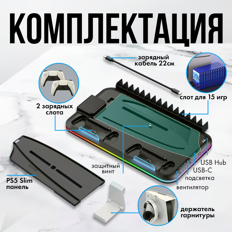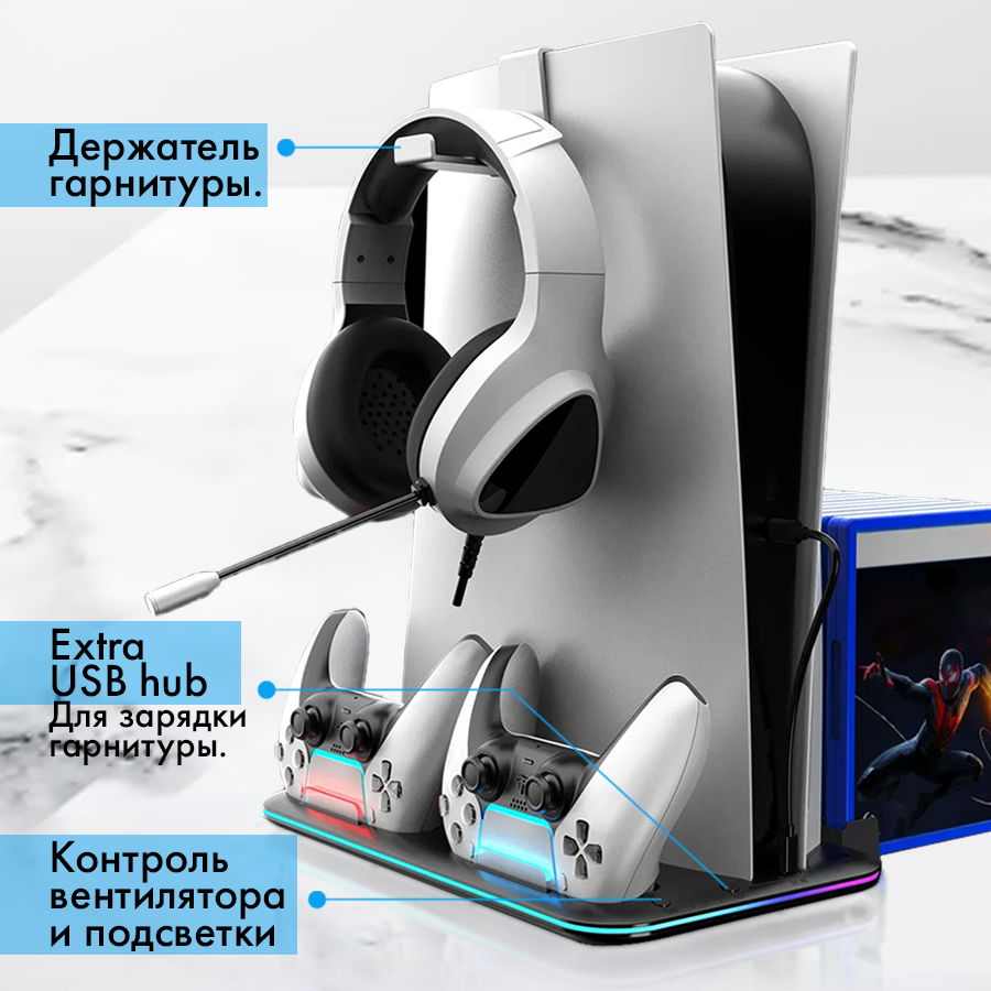 Зарядная док станция для Sony Playstation 5 Slim c охлаждением интересное: