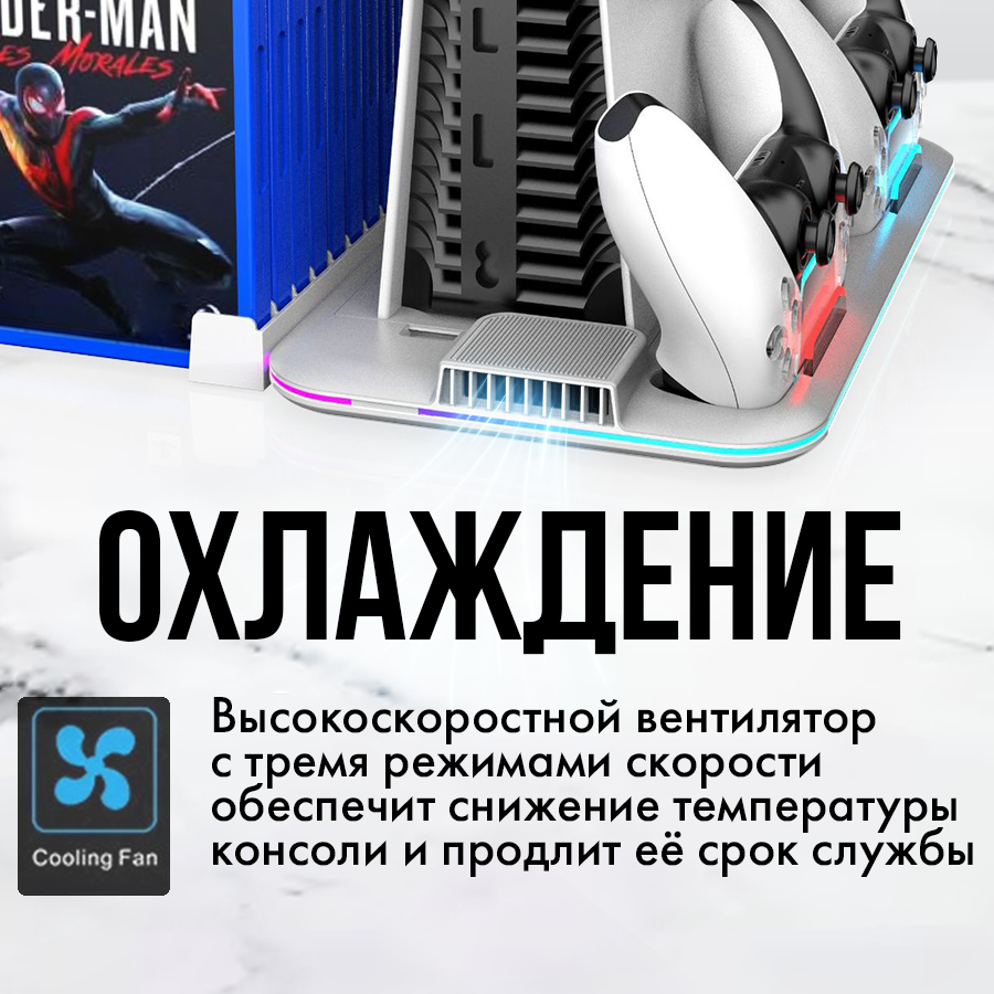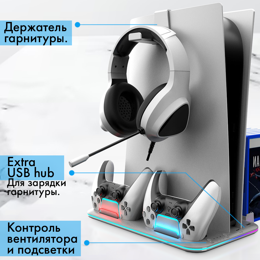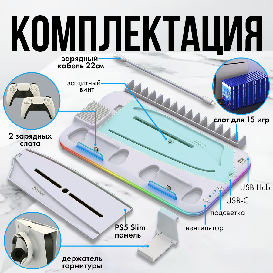 Зарядная док станция для Sony Playstation 5 Slim белая c охлаждением интересное: