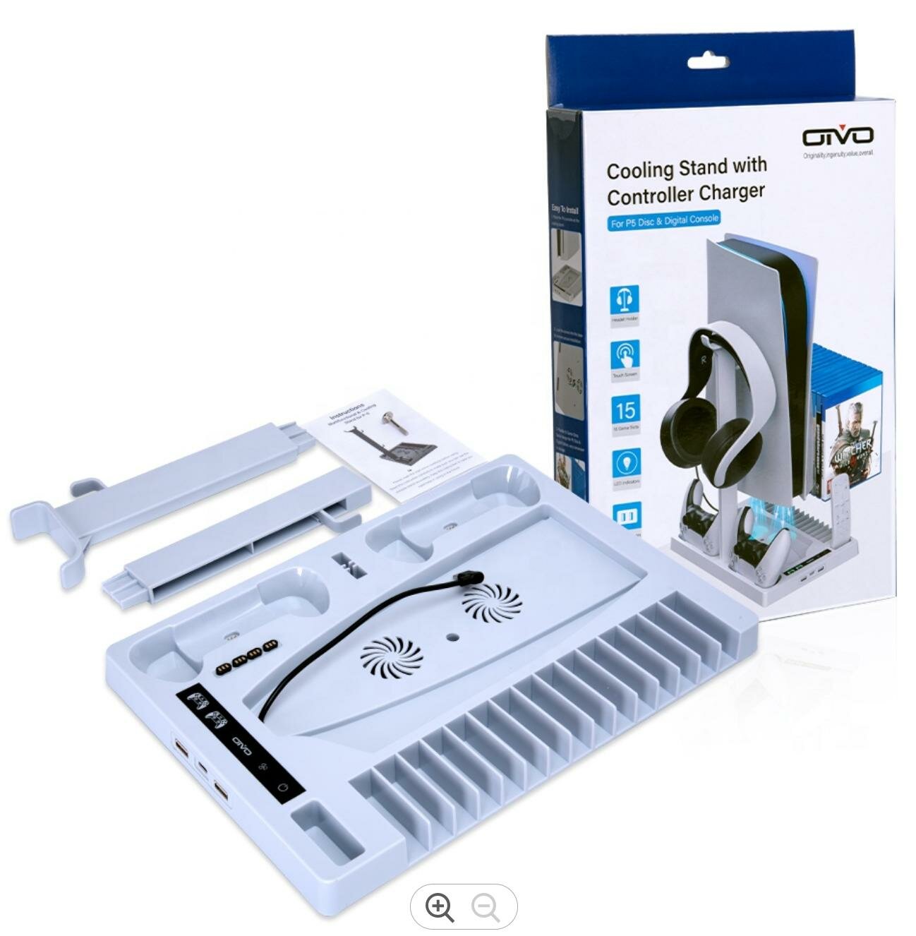 Купить Подставка для вертикальной установки консоли + охлаждение + зарядная станция для 2-х геймпадов + держатель для дисков OIVO (IV-P5246W) (PS5)