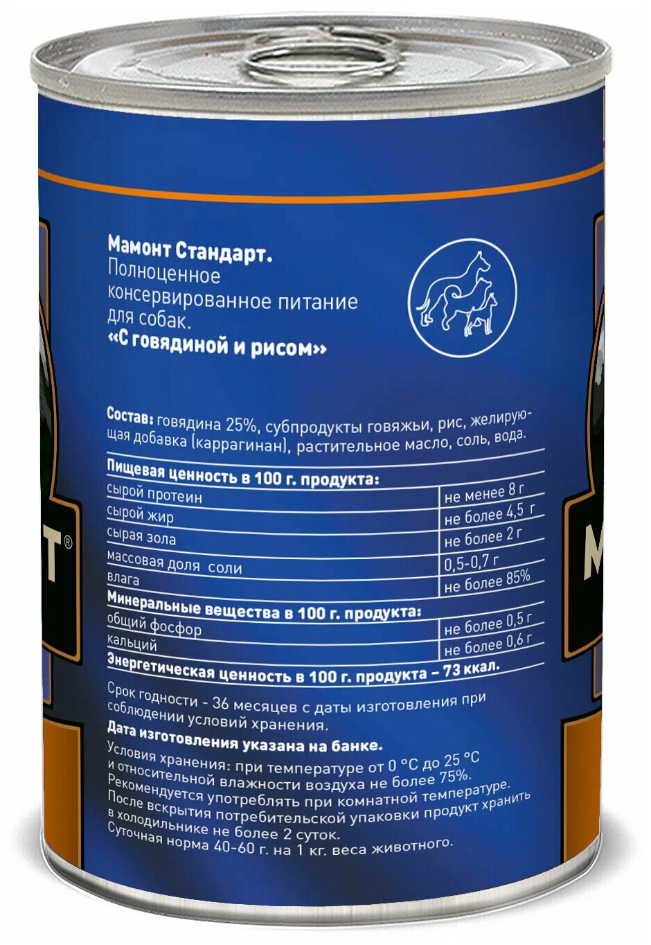 Мамонт Стандарт Говядина с рисом влажный корм для собак жестяная банка 0,97 кг (6 шт в уп)