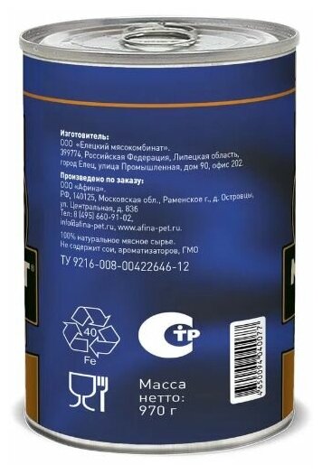 Влажный корм для собак с говядиной и рисом, Мамонт Стандарт, упаковка 6 шт х 970 г