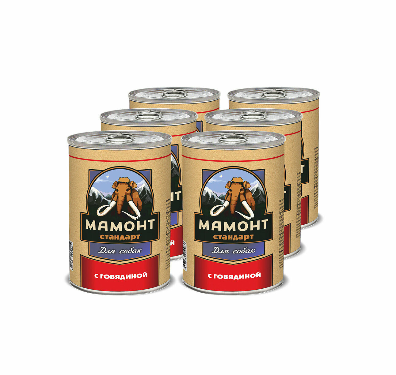 Купить Влажный корм для собак с говядиной, Мамонт Стандарт, упаковка 6 шт х 970 г