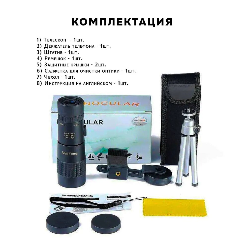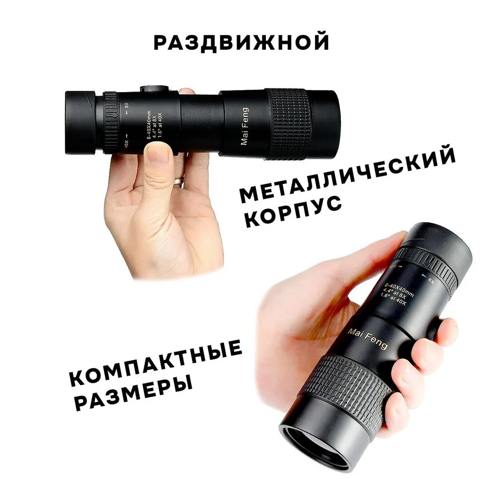 Монокулярный компактный телескоп с зумом MaiFeng 8-40х40 BAK4 интересное: