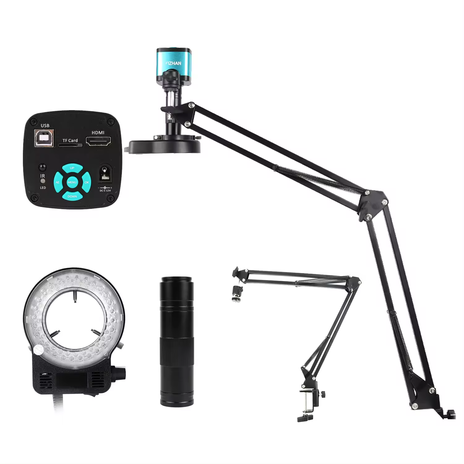 Купить Микроскоп цифровой с подсветкой для пайки 4K 48MP HDMI USB 60FPS зум 150 на складном кронштейне