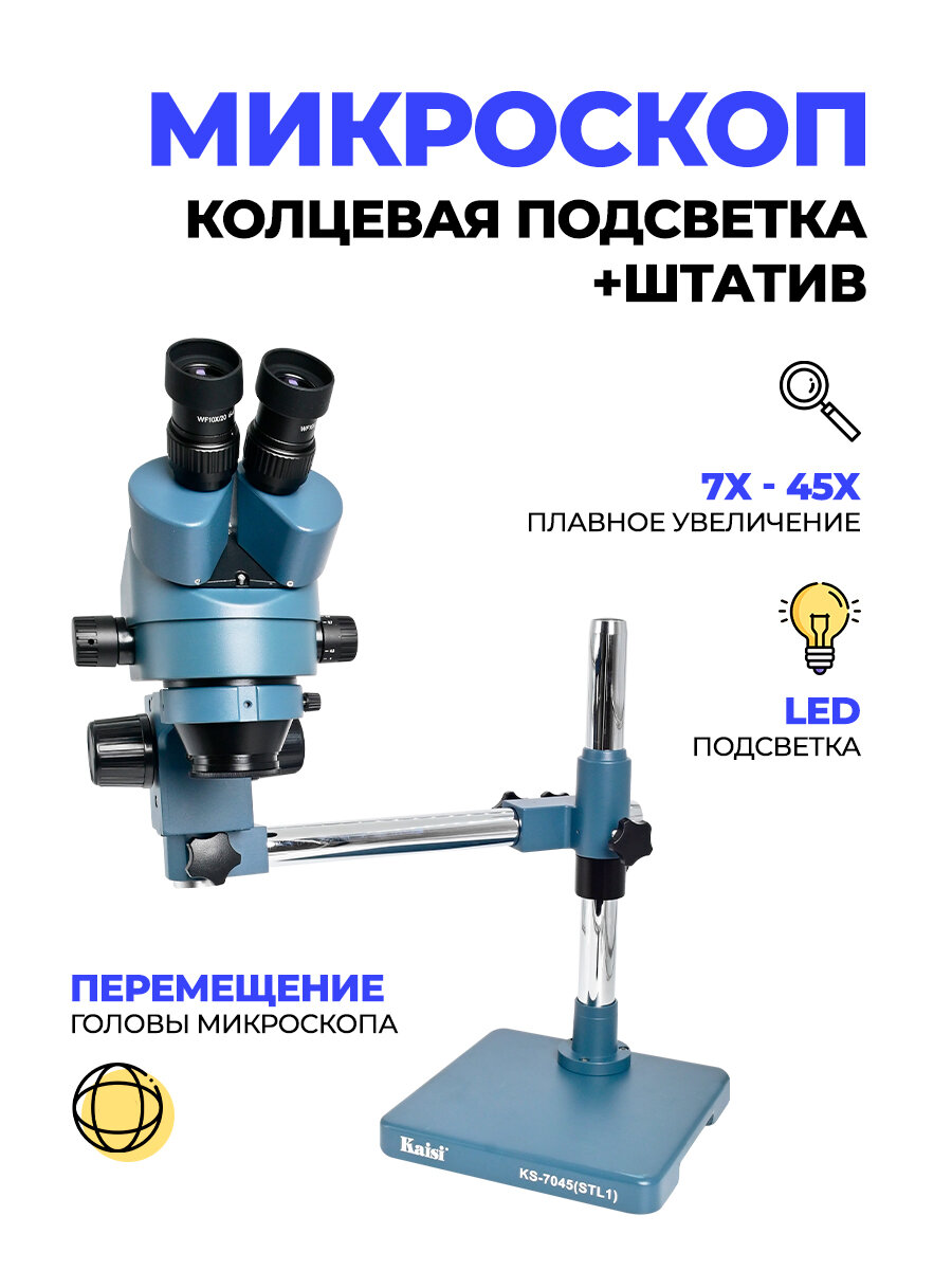 Бинокулярный микроскоп со штативом и кольцевой подсветкой интересное: