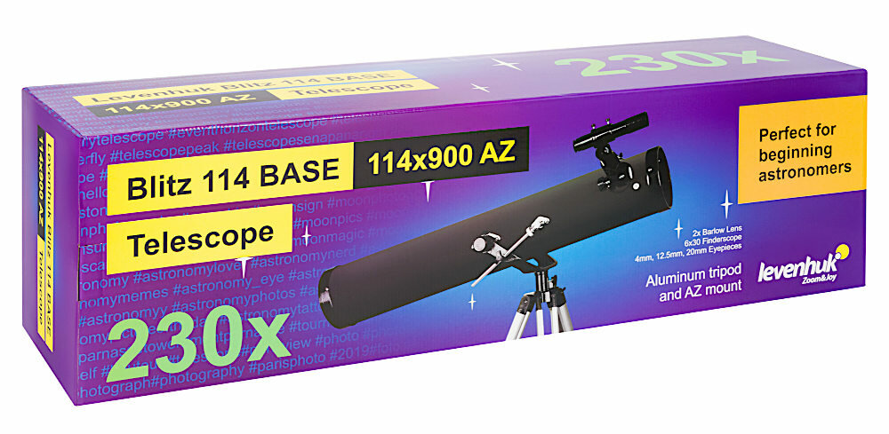 Телескоп Levenhuk Blitz 114 BASE, подарок - адаптер для смартфона и книга знаний "Космос" интересное: