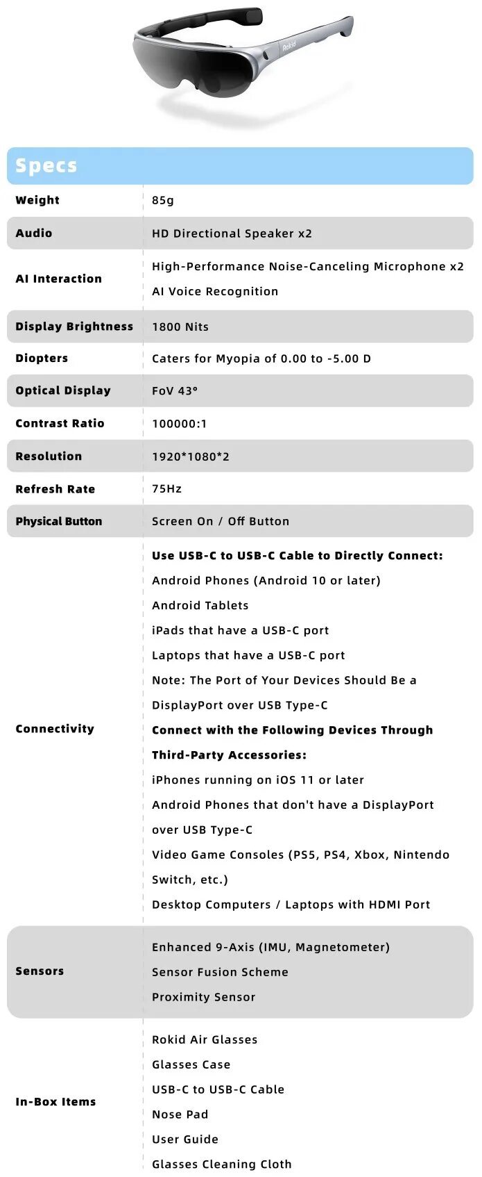 Умные очки Rokid Air AR, with HDMI to USBC