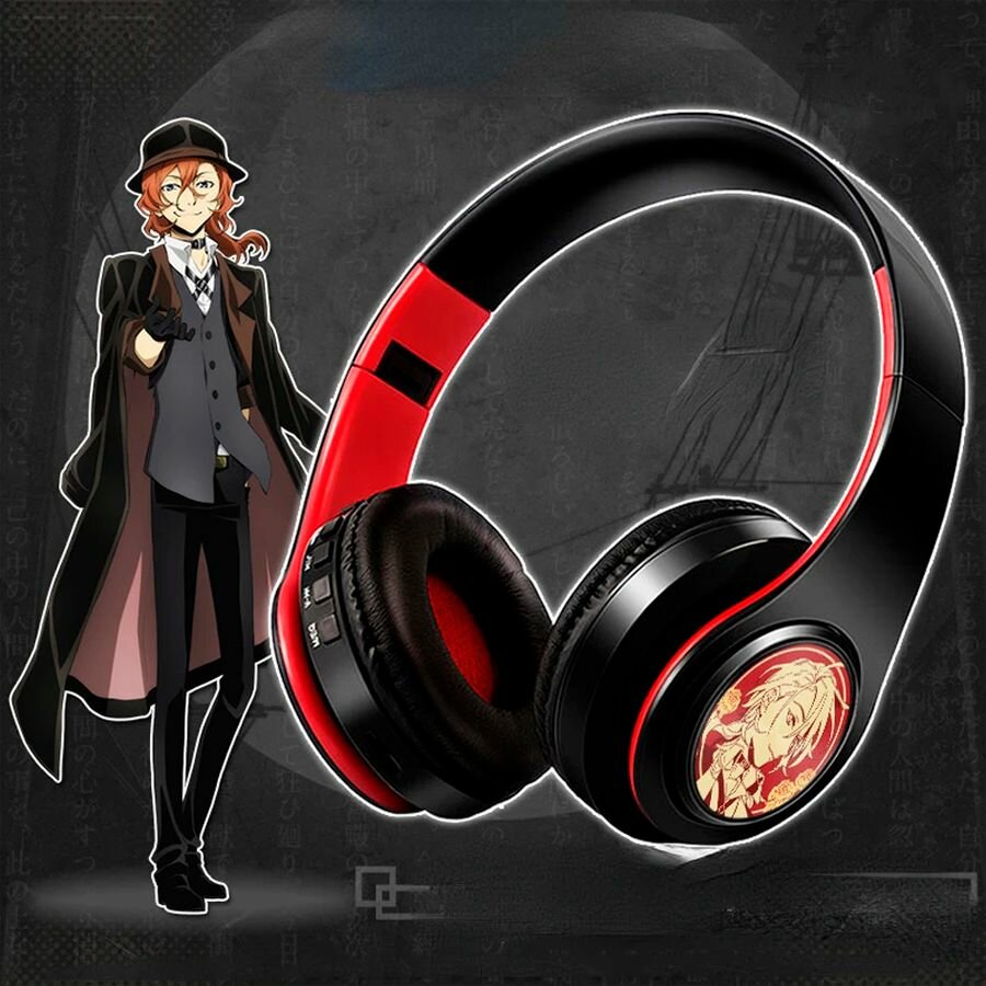 Купить Беспроводные Bluetooth наушники Великий из бродячих псов Накахара Чуя с микрофоном, аниме блютуз гарнитура для телефона