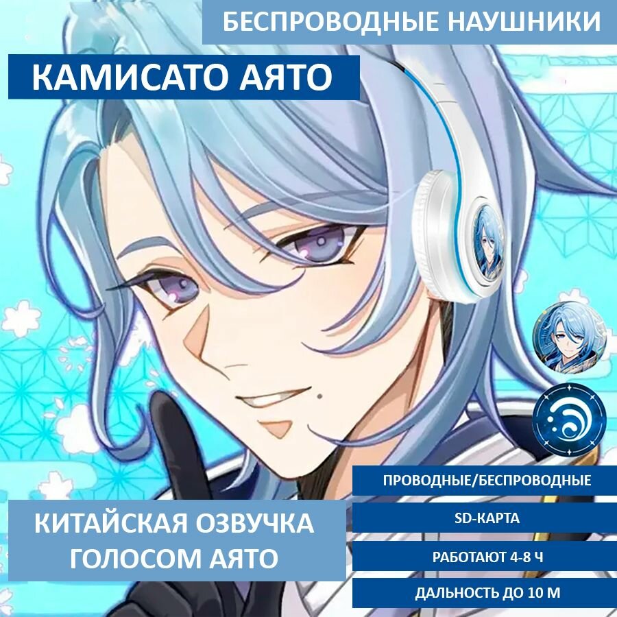 СохранитьБеспроводные Bluetooth наушники Genshin Impact Геншин Импакт Аято с микрофоном, блютуз гарнитура для телефона интересное:
