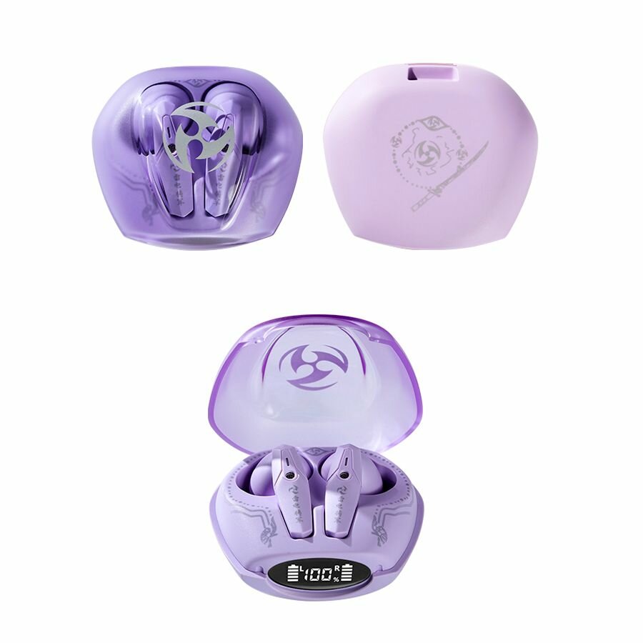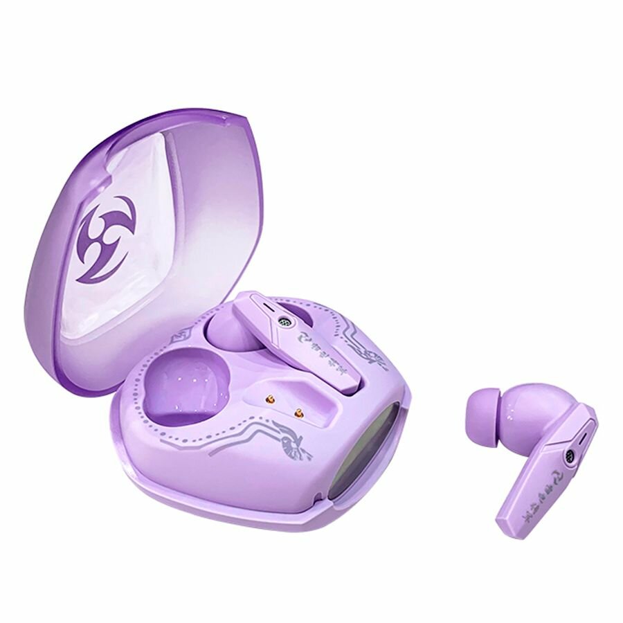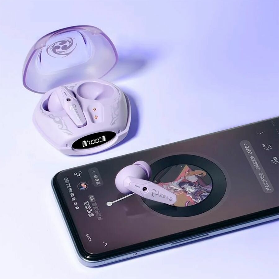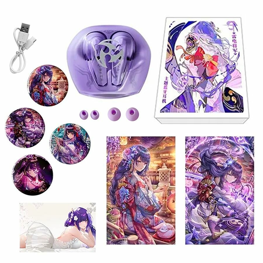 СохранитьНаушники беспроводные с микрофоном Bluetooth Genshin Impact Геншин Импакт Райден маленькие с сенсорным управлением, блютуз гарнитура для телефона и компьютера, подарок детям интересное: