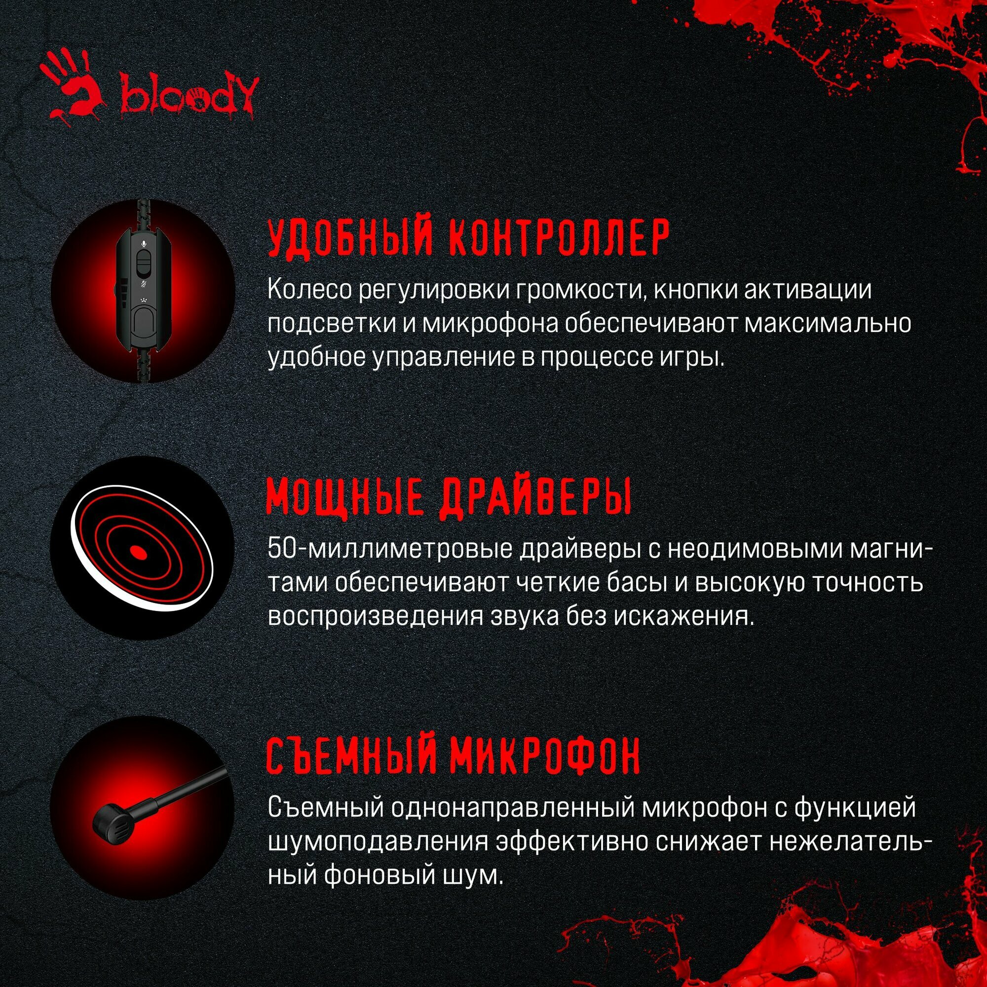 Игровые наушники с микрофоном A4Tech Bloody G575 PUNK, Подсветка RGB, мониторные 7.1, 2м. USB, черный