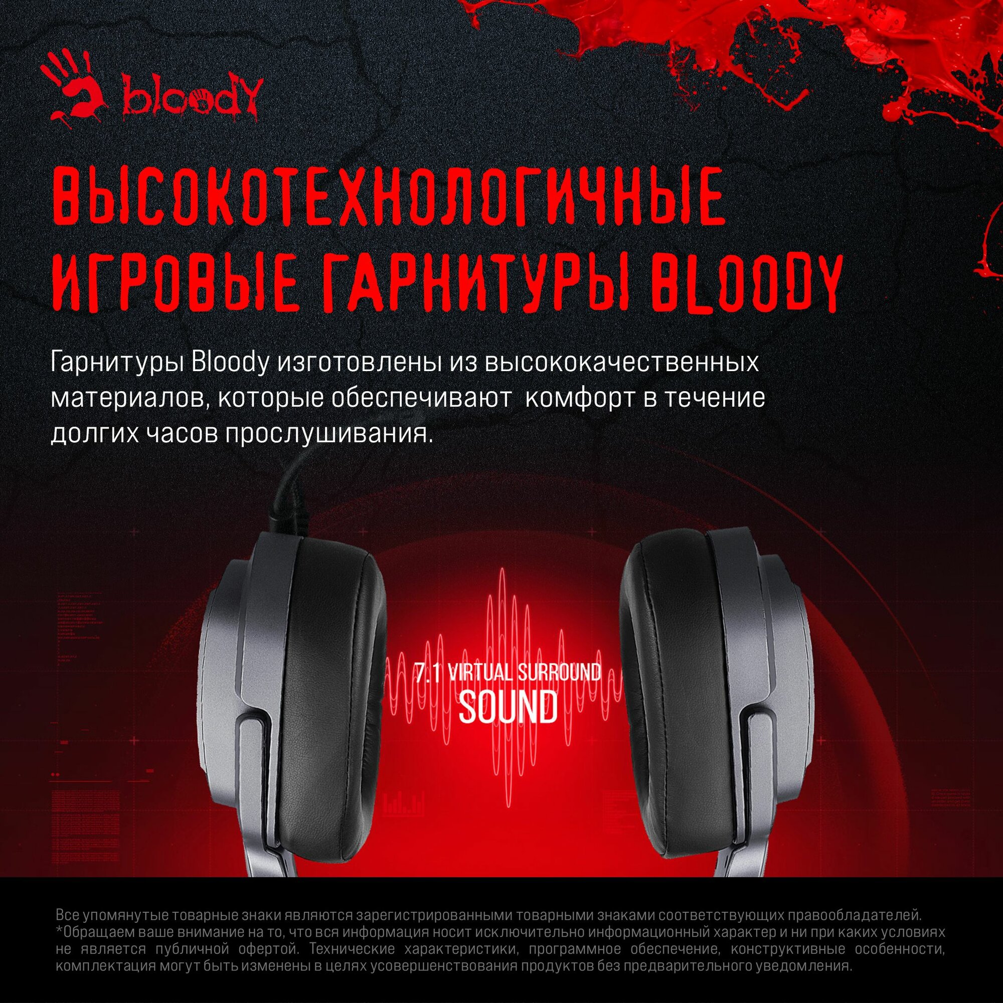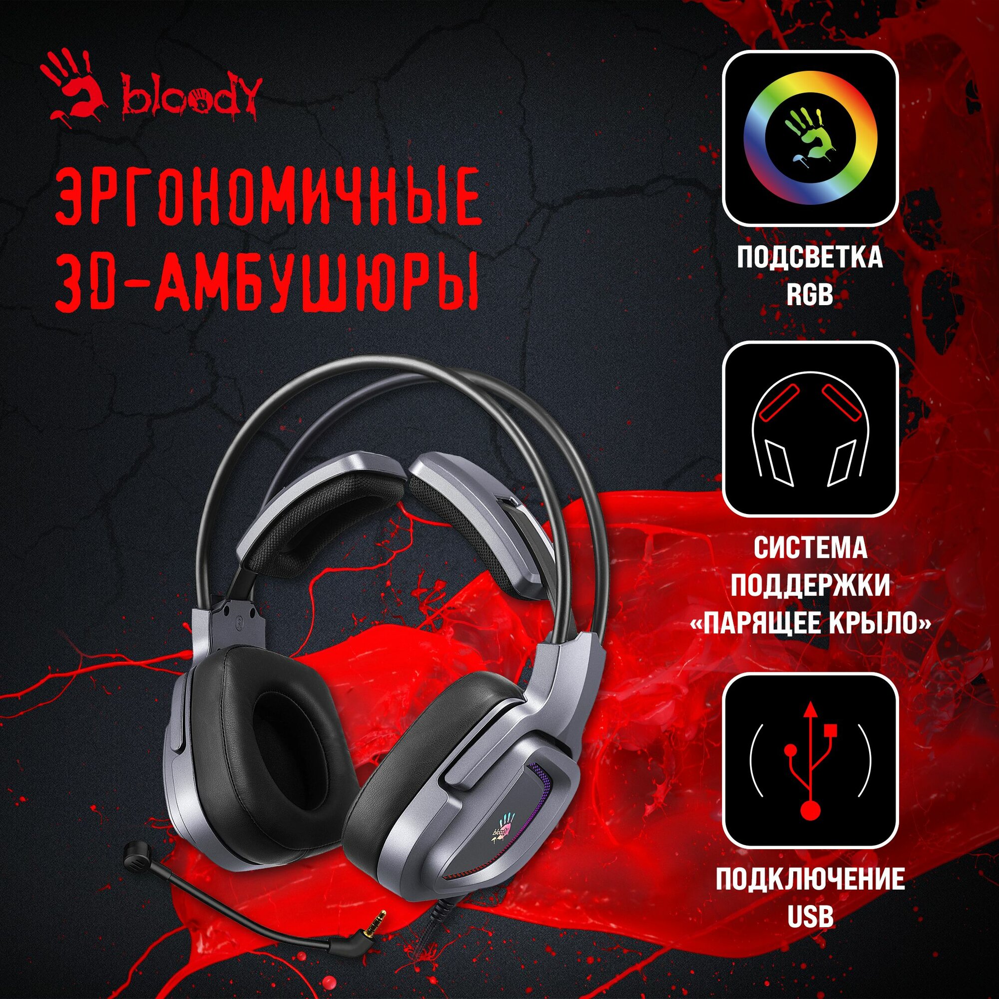 Купить Игровые наушники с микрофоном A4Tech Bloody G575 PUNK, Подсветка RGB, мониторные 7.1, 2м. USB, серый