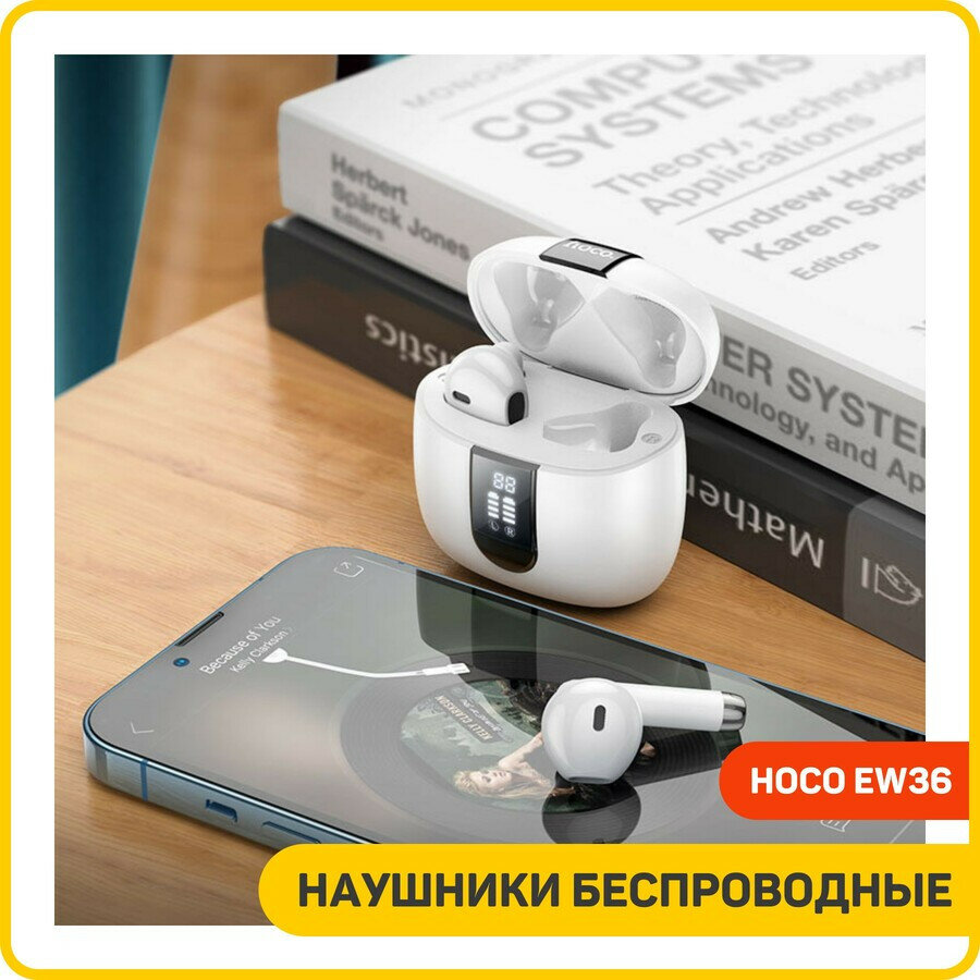 Наушники беспроводные Hoco EW36 (с боксом для зарядки) (Bluetooth) белый