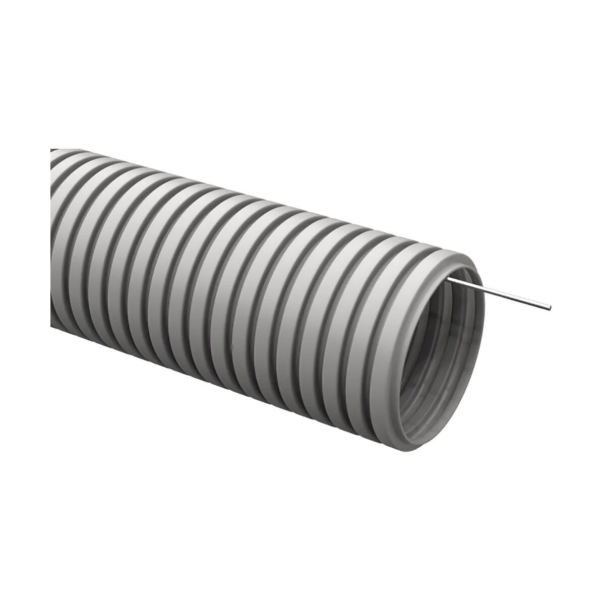 Труба гофрированная легкая с зондом серая ПВХ д 20 мм, бухта 25м