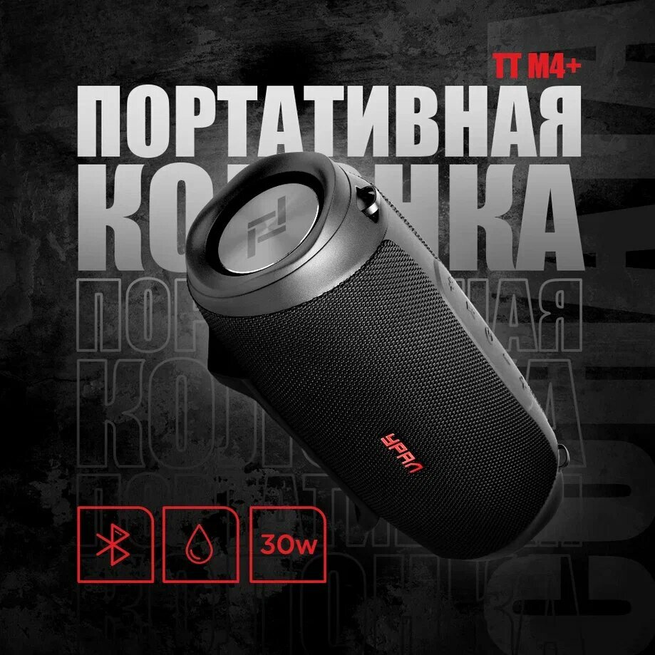 Купить Портативная Bluetooth колонка Урал ТТ М4+ Черная, водонепроницаемая IP67, 30 Вт Мощность, TWS, FM-радио, беспроводная
