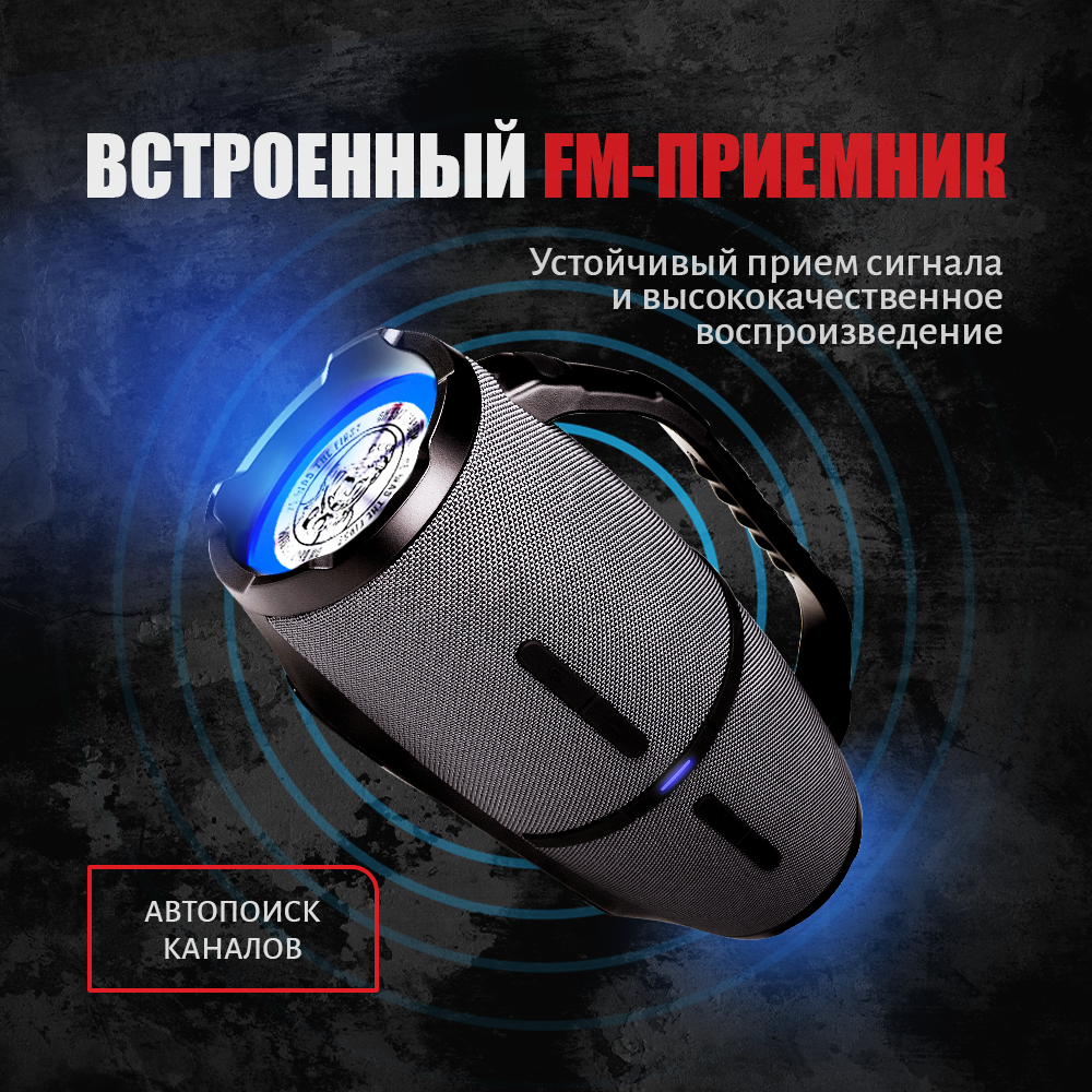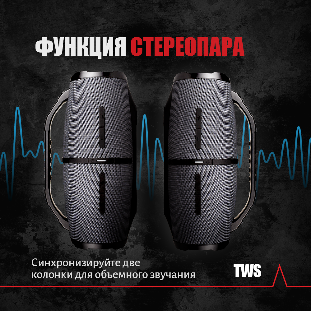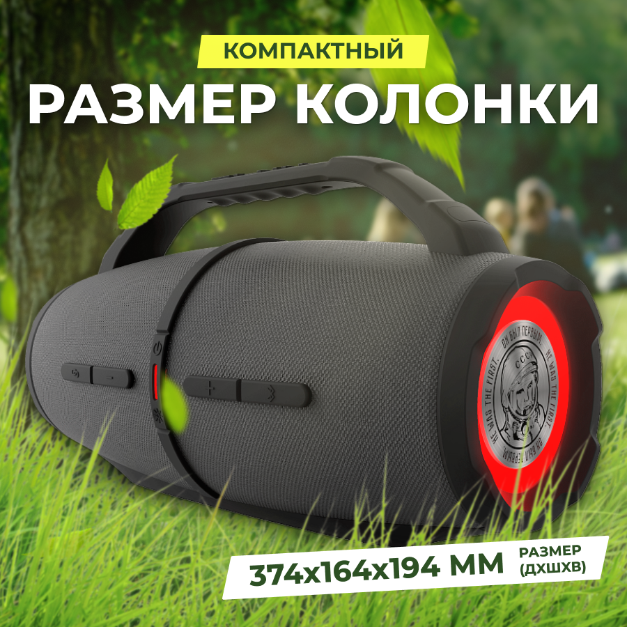 Портативная Bluetooth колонка Урал Гагарин ГР-007 серая, водонепроницаемая IP67, 60 Вт Мощность, TWS, FM-радио, беспроводная