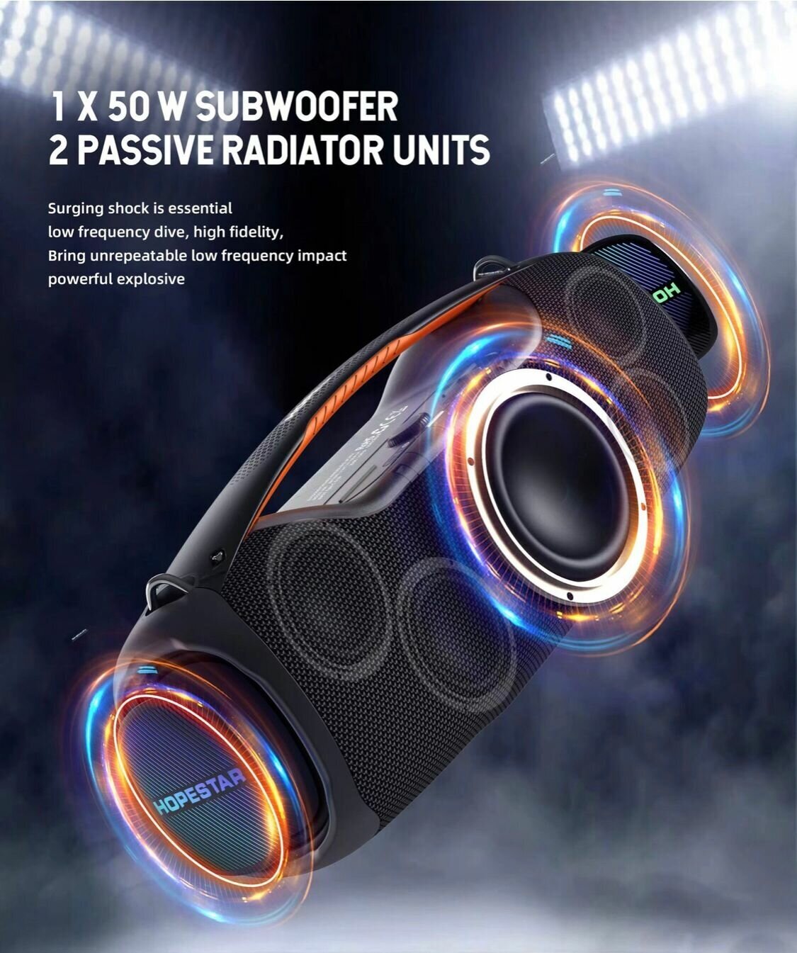 Колонка HOPESTAR A60, большая акустическая система с 5 динамиками, беспроводная Bluetooth колонка мощностью 100W с микрофоном