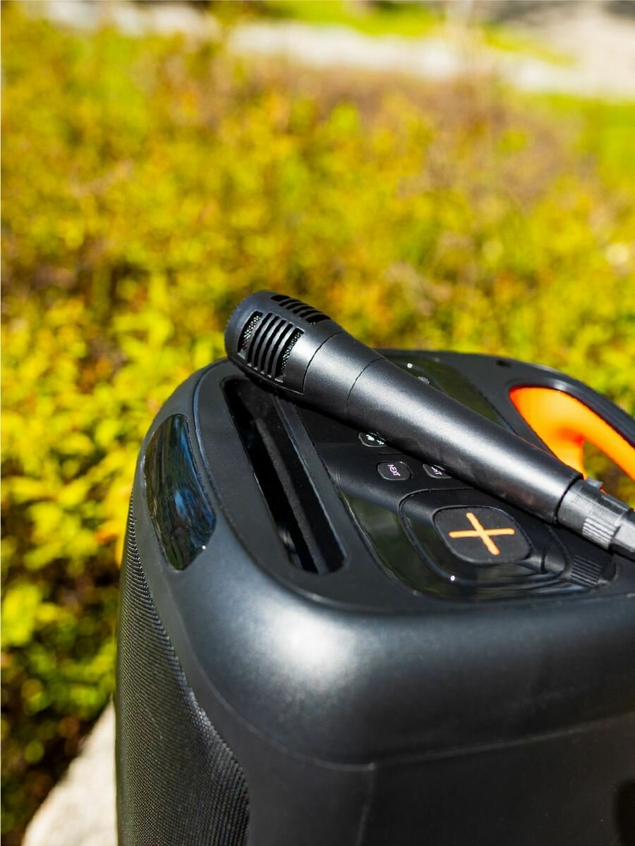 | Особенности | FM-радио / дисплей / караоке / ручка / световые эффекты |