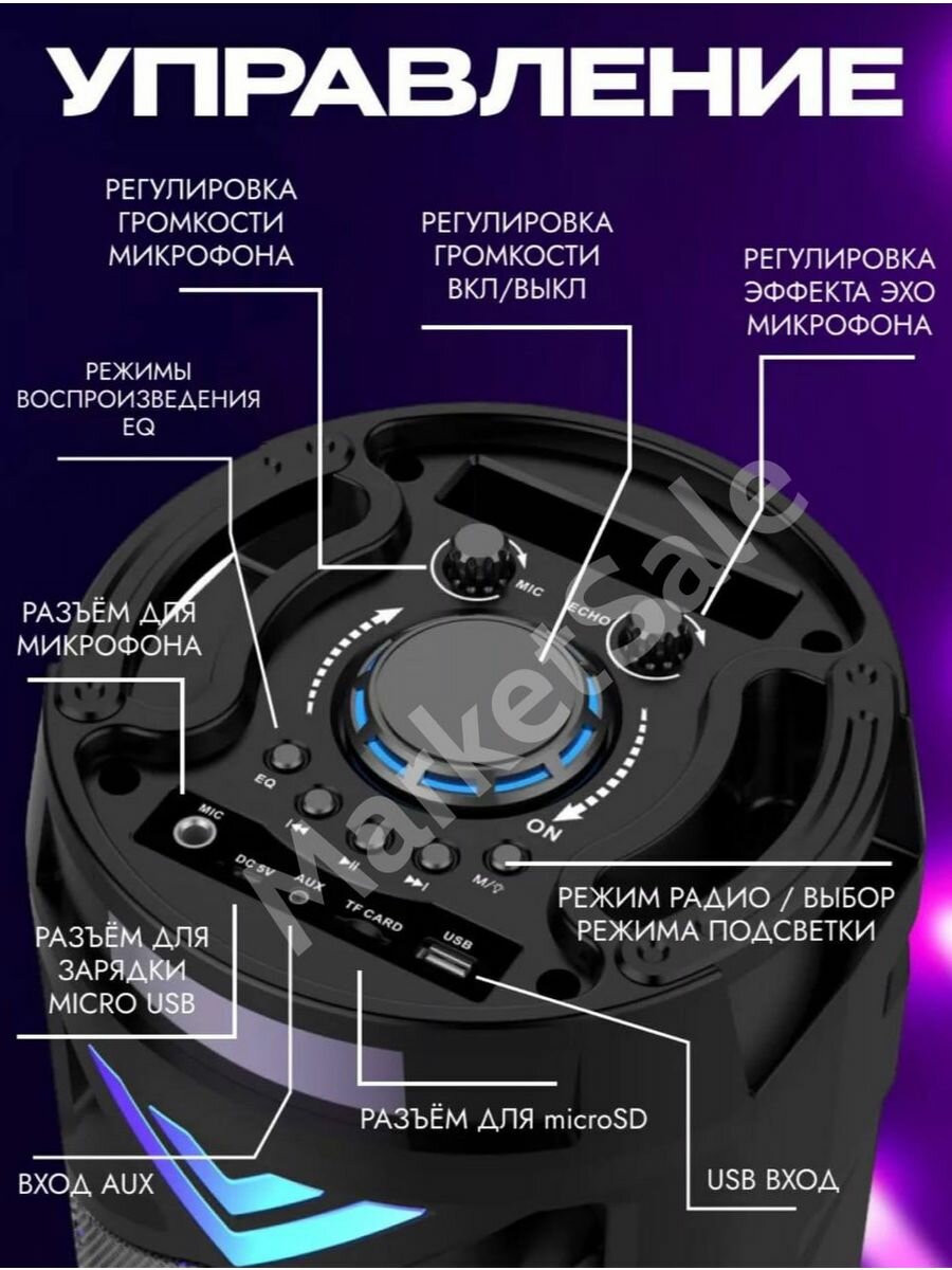 | Особенности | FM-радио / встроенный микрофон (функция HandsFree) / караоке / световые эффекты |
