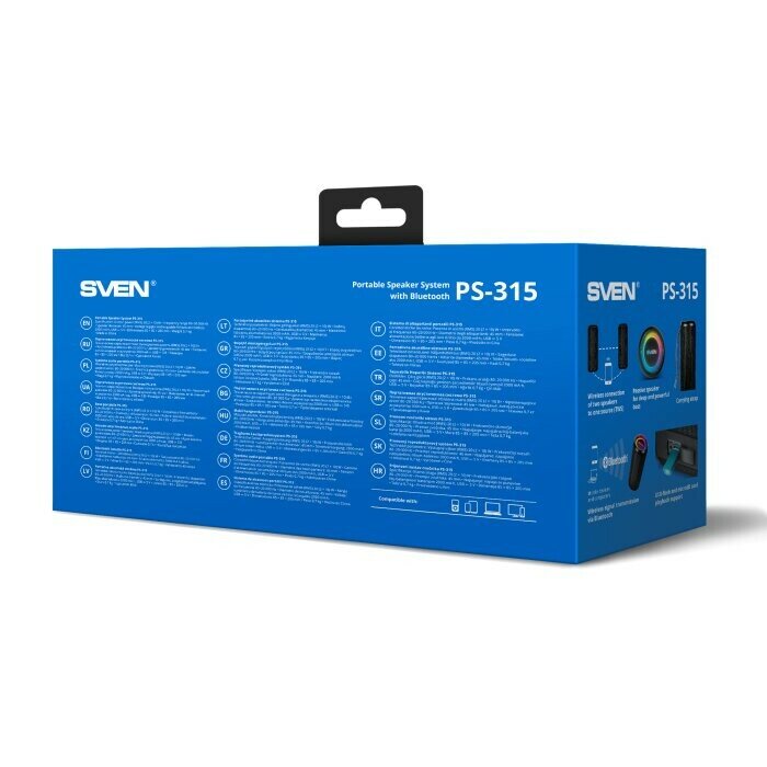 Ниже Вы можете прочитать отзывы на SVEN PS-315, черный (2.0, мощность 2x10 Вт (RMS), Waterproof (IPx6), TWS, Bluetooth, USB, microSD, встроенный аккумулятор), ознакомится с подробными характеристиками, посмотреть интересные обзоры и фотографии на SVEN PS-315, черный (2.0, мощность 2x10 Вт (RMS), Waterproof (IPx6), TWS, Bluetooth, USB, microSD, встроенный аккумулятор).