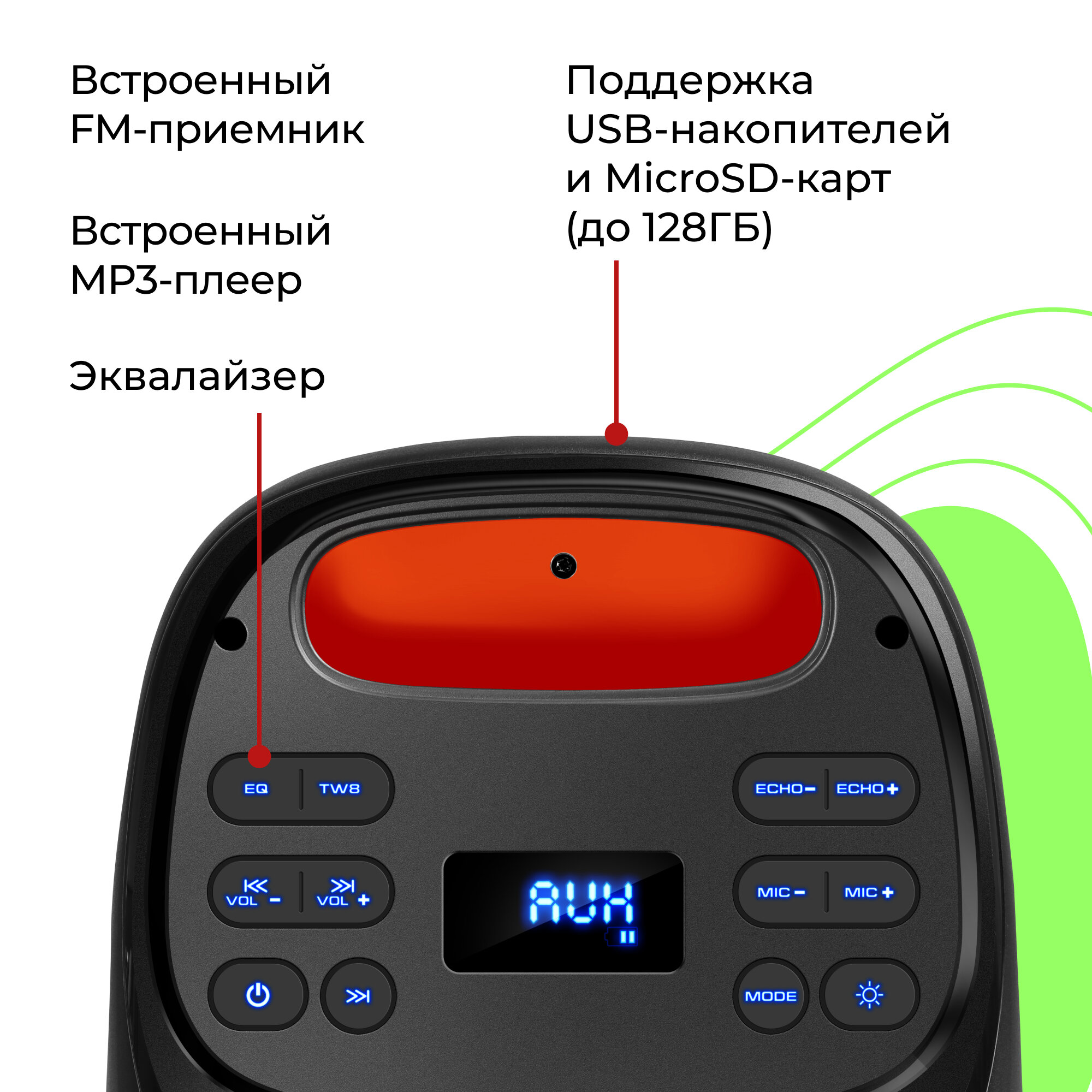 | Особенности | FM-радио / дисплей / караоке / поддержка microSD / световые эффекты |