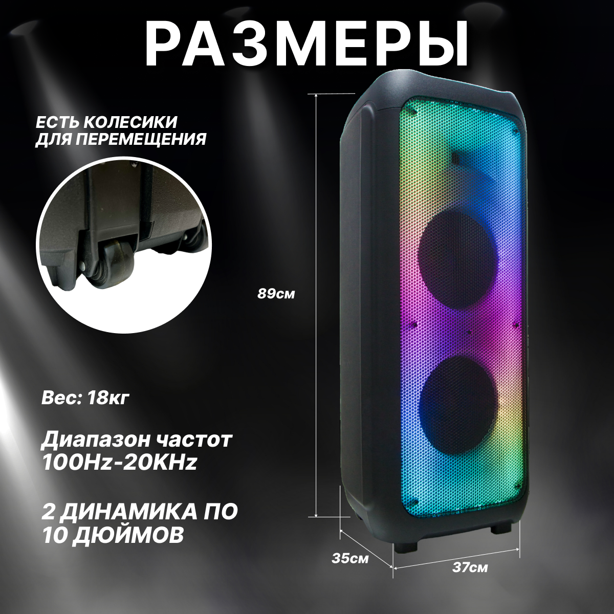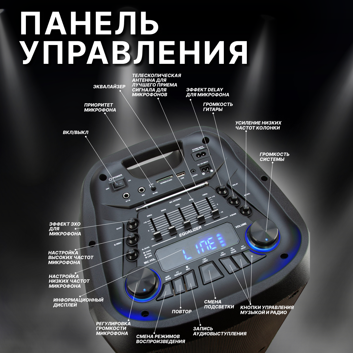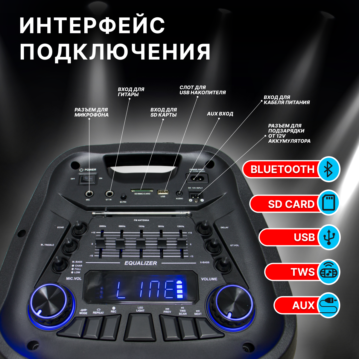 | Особенности | FM-радио / дисплей / караоке / режим Power Bank / ручка / световые эффекты |
