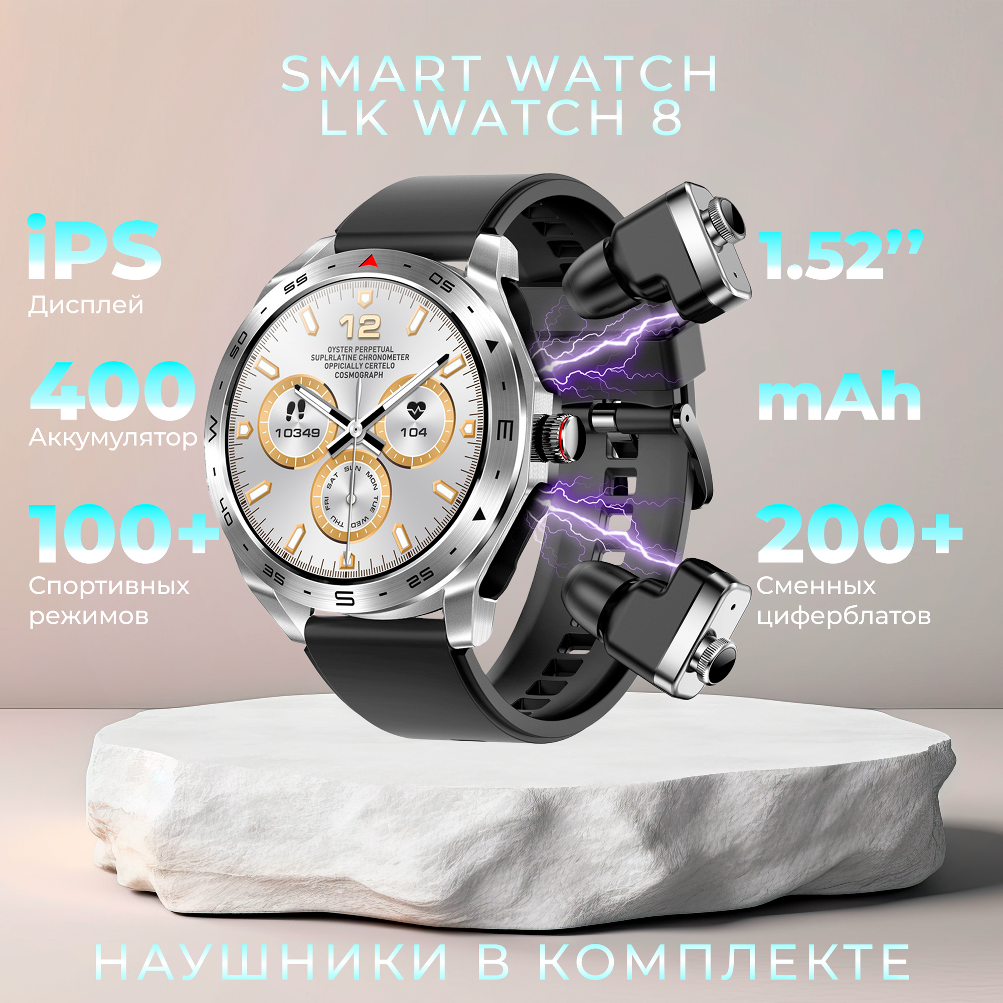 Смарт часы LK watch 8 с беспроводными наушниками, серебро интересное: