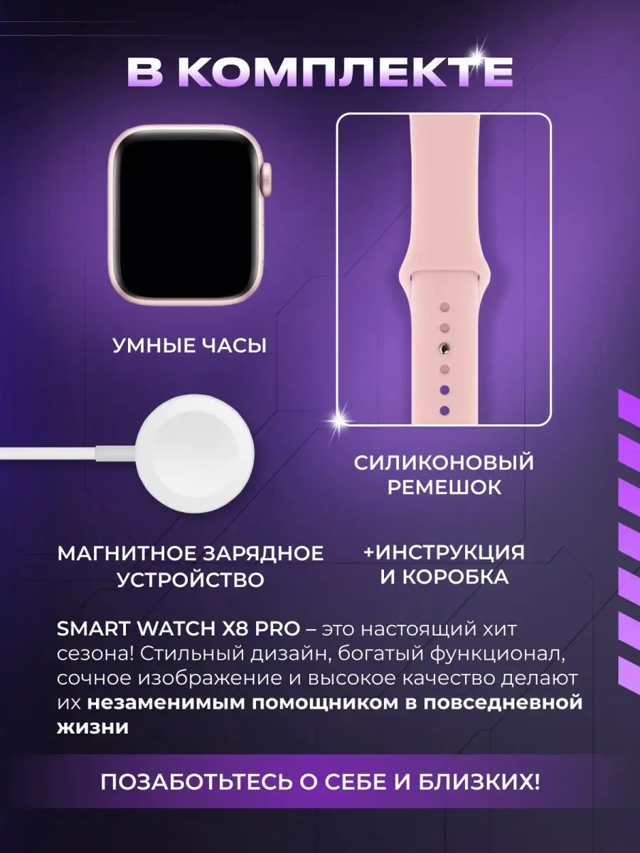Часы смарт умные наручные X8 Pro smart Розовые/45 мм/AMOLED интересное: