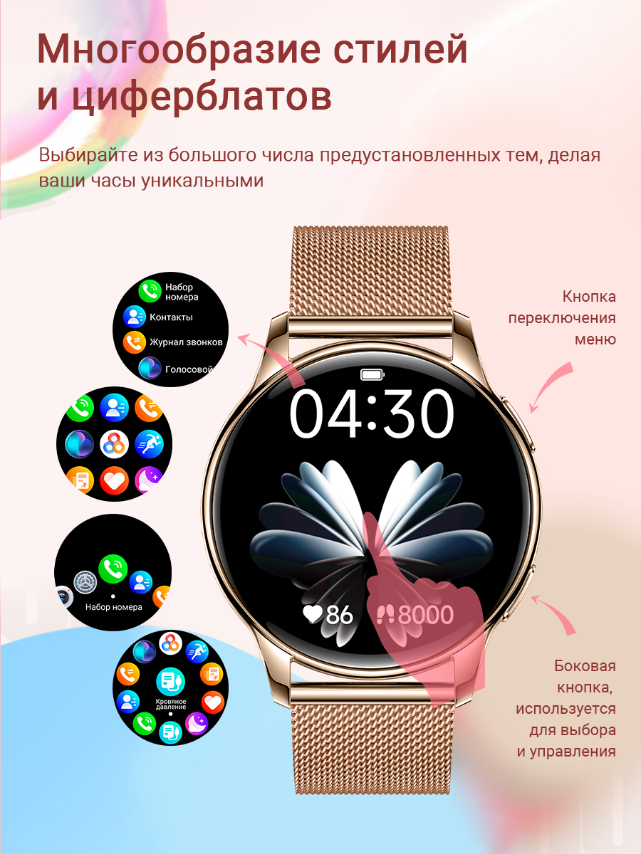 СохранитьСмарт-часы умные наручные SMART PRESENT DA11 женские, круглые, с функцией телефона, с большим дисплеем, золотистые интересное: