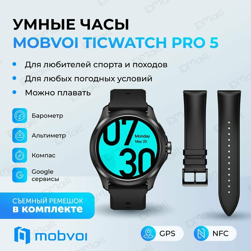 Умные часы Mobvoi TicWatch Pro 5 Elite Edition с кожаным ремешком в комплекте интересное: