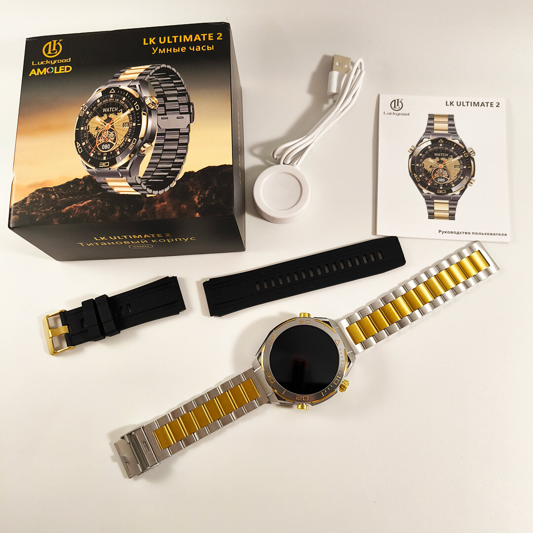 Смарт часы мужские GoodSmart Ultimate 2 чёрно-золотого цвета, AMOLED экран