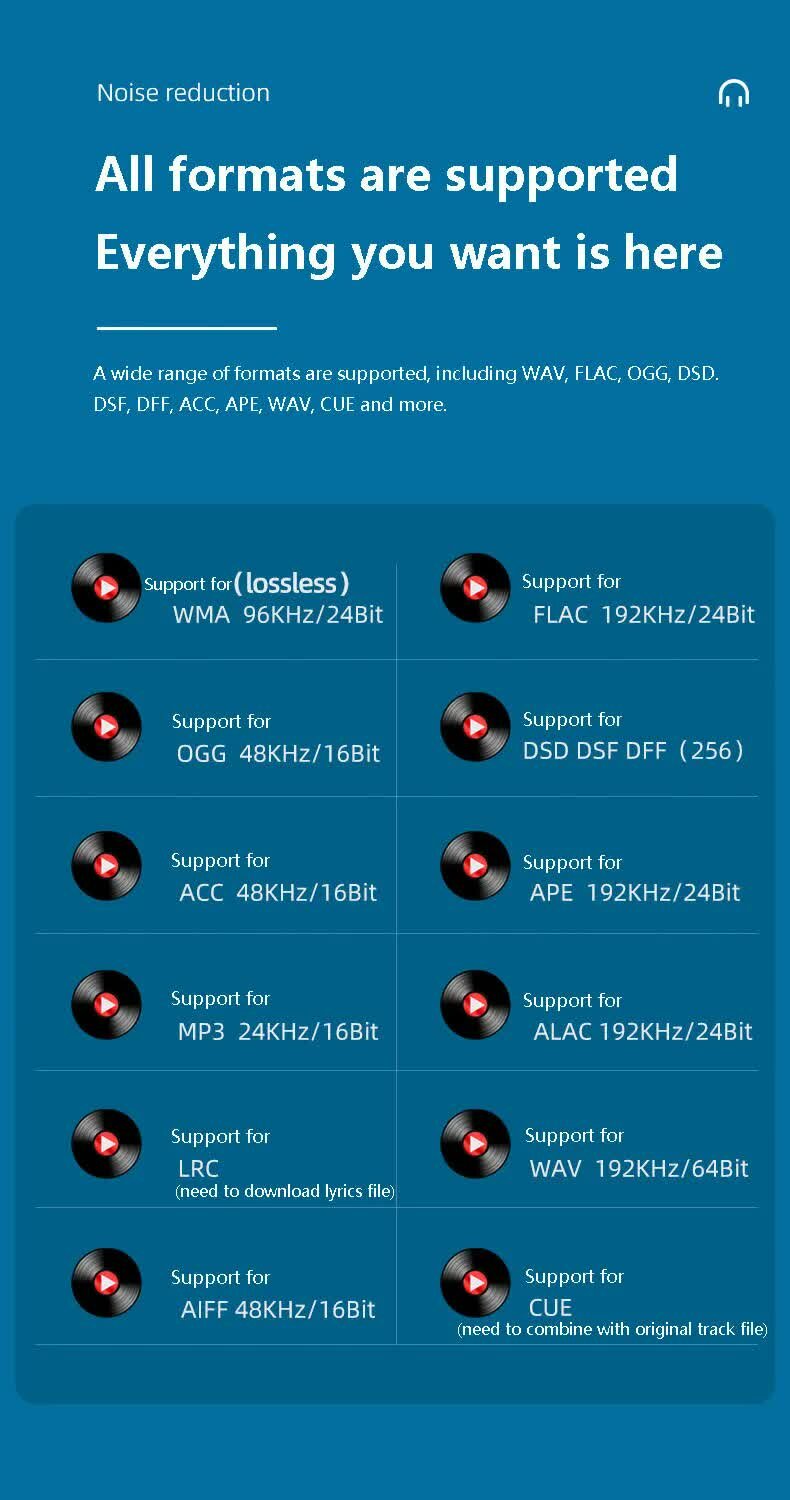 | Поддержка аудиоформатов | AAC / AIFF / DSD / FLAC / MP3 / OGG / WAV / WMA |
