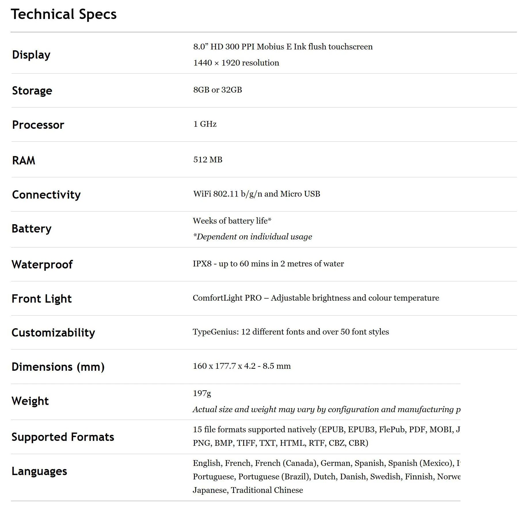 Электронная книга KOBO Forma N782 ink not ink, 8 дюймов, PPI, черный интересное: