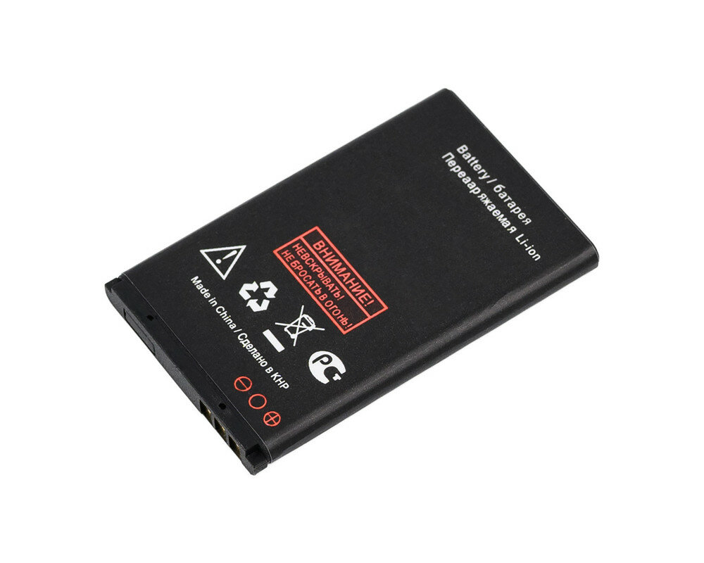 | Совместимые модели | Explay Ice / Explay Style / FinePower S231 / Fly DS103 / Fly DS104D / Fly DS107 / Fly DS107D / Fly Ezzy 5+ / Fly Ezzy 7 / Fly Ezzy 7+ / Fly Ezzy Flip / Fly Ezzy Trendy / Fly Ezzy Trendy 3 / Fly Ezzy4 / Fly Ezzy5 / Fly Ezzy5+ / Fly Ezzy7 / Fly FF177 / Fly FF179 / Fly FF180 / Fly FF183 / Fly FF188 / Fly FF247 / Fly TS90 / Fly TS91 / JOY'S S1 / Jinga Simple F200n / KENEKSI K5 / KENEKSI K6 / KENEKSI M5 / KENEKSI Q3 / KENEKSI Q4 / KENEKSI Q5 / KENEKSI S1 / KENEKSI S10 / KENEKSI S2 / KENEKSI S8 / KENEKSI S9 / KENEKSI X8 / MAXVI C21 / MAXVI E3 / Nokia 1006 / Nokia 108 / Nokia 1202 / Nokia 1203 / Nokia 1508 / Nokia 1661 / Nokia 1662 / Nokia 2220 slide / Nokia 2650 / Nokia 2652 / Nokia 2690 / Nokia 3108 / Nokia 3500 Classic / Nokia 5100 / Nokia 6100 / Nokia 6101 / Nokia 6102 / Nokia 6102i / Nokia 6103 / Nokia 6125 / Nokia 6126 / Nokia 6131 / Nokia 6133 / Nokia 6136 / Nokia 6170 / Nokia 6260 / Nokia 6300 / Nokia 6300i / Nokia 6301 / Nokia 7200 / Nokia 7205 Intrigue / Nokia 7270 / Nokia 8208 / Nokia C2-05 / Philips Xenium E2101 / VERTEX C304 / VERTEX C306 / VERTEX C308 / VERTEX C312 / VERTEX C314 / VERTEX D532 / VERTEX M102 / VERTEX M103 / VERTEX M104 / VERTEX M107 / VERTEX M109 / VERTEX S101 / VERTEX S104 / VERTEX S105 / VERTEX S106 / teXet TM-101 / teXet TM-127 / teXet TM-128 / teXet TM-130 / teXet TM-204 / teXet TM-214 / teXet TM-304 / teXet TM-400 / teXet TM-401 / teXet TM-402 / teXet TM-414 / teXet TM-99 / teXet TM-B111 / teXet TM-B112 / teXet TM-B206 / teXet TM-B210 / teXet TM-B221 / teXet TM-B306 / teXet TM-B310 / teXet TM-B312 / teXet TM-B318 / teXet TM-B320 / teXet TM-B415 / teXet TM-B416 / teXet TM-D105 / teXet TM-D107 / teXet TM-D108 / teXet TM-D109 / teXet TM-D205 (2011) |
