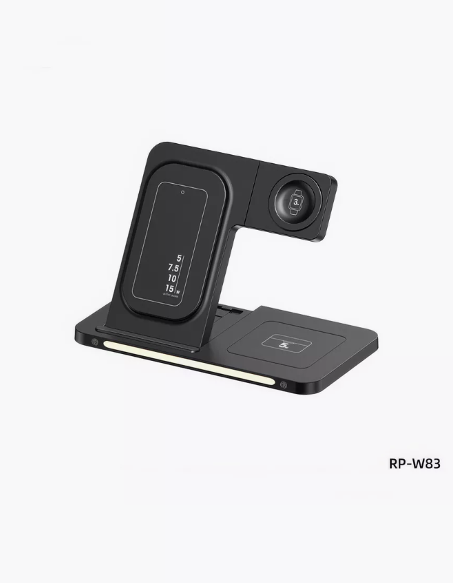 Купить Беспроводная зарядная станция для телефонов, часов и наушников 3 в 1 черная