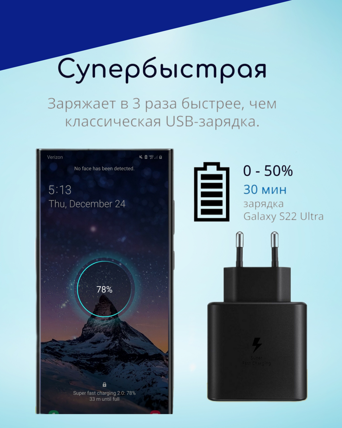 Сверхбыстрое зарядное устройство для Samsung Type-C, 25 Вт, черный цвет интересное:
