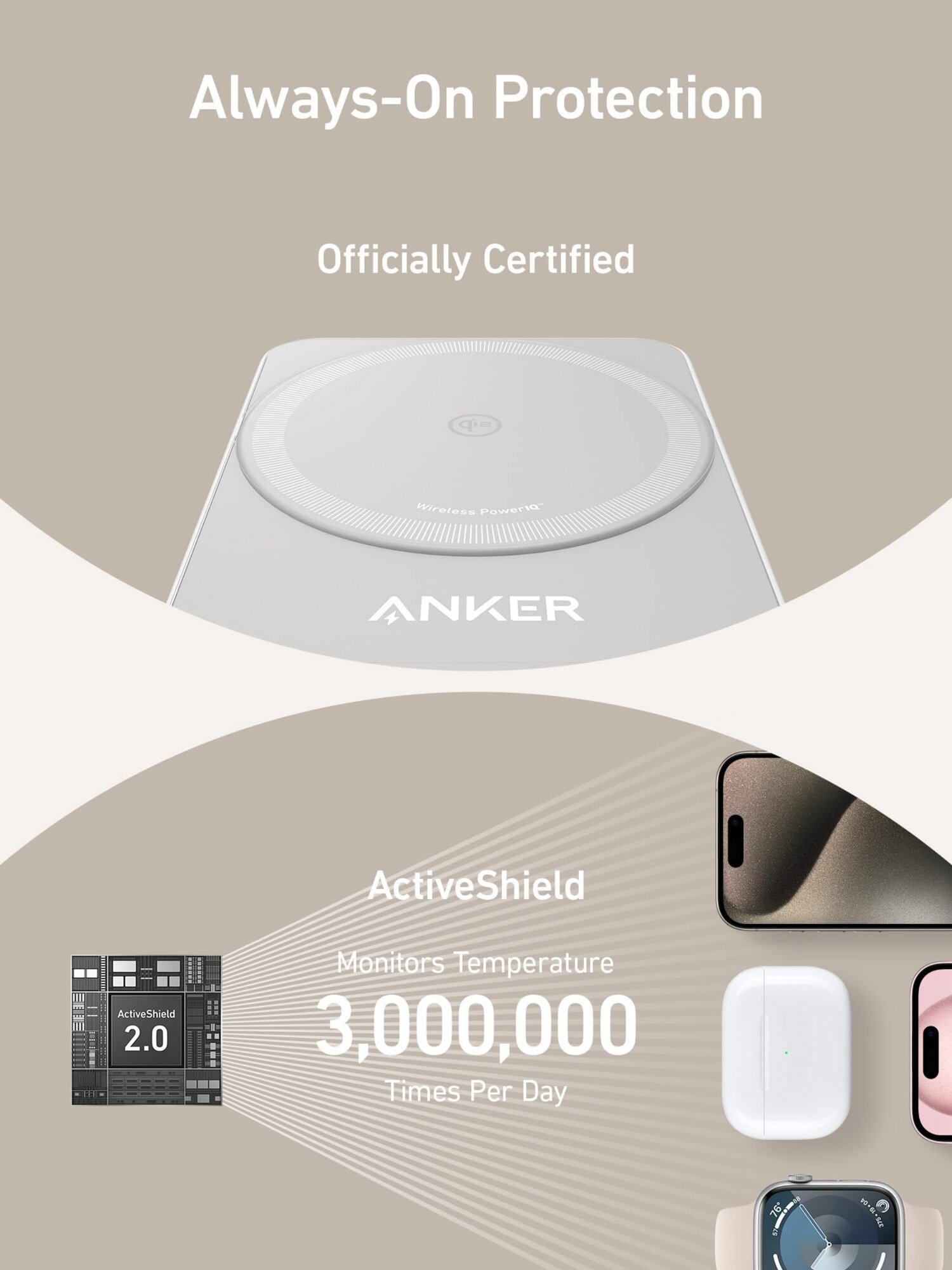 Беспроводная зарядная станция Anker MagGo 3-в-1 15W (B2557211)