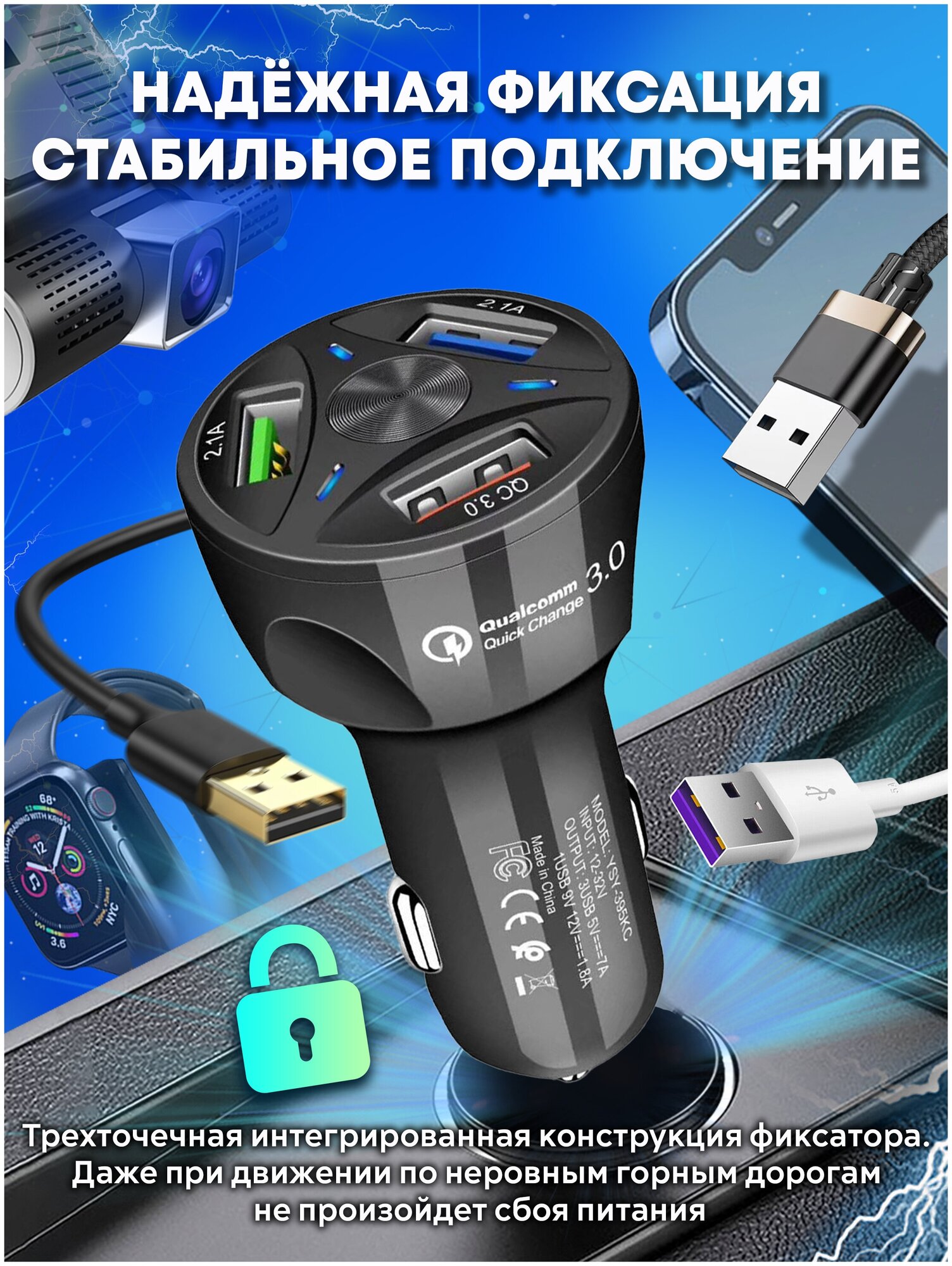 Автомобильное зарядное устройство для телефона на 4 порта, 7А, быстрая зарядка в прикуриватель, QC3.0, 4USB разъема, блок питания черный