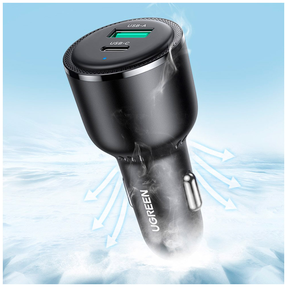 Автомобильное зарядное устройство Ugreen CD239 (90645) USB-C PD + USB-A 63 Вт, Fast Car Charger без кабеля, черный интересное: